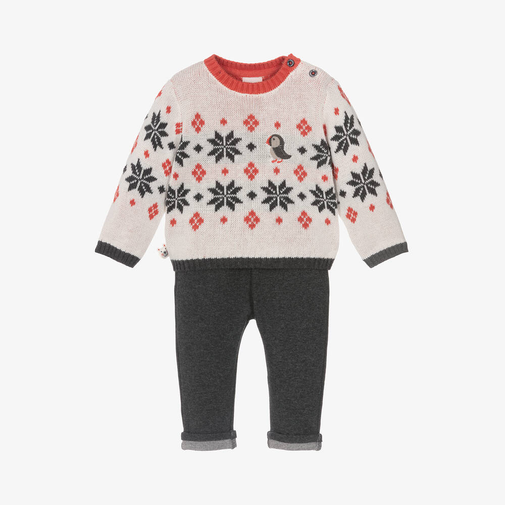 Baby Boys Ivory & Grey Fair Isle Trouser Set