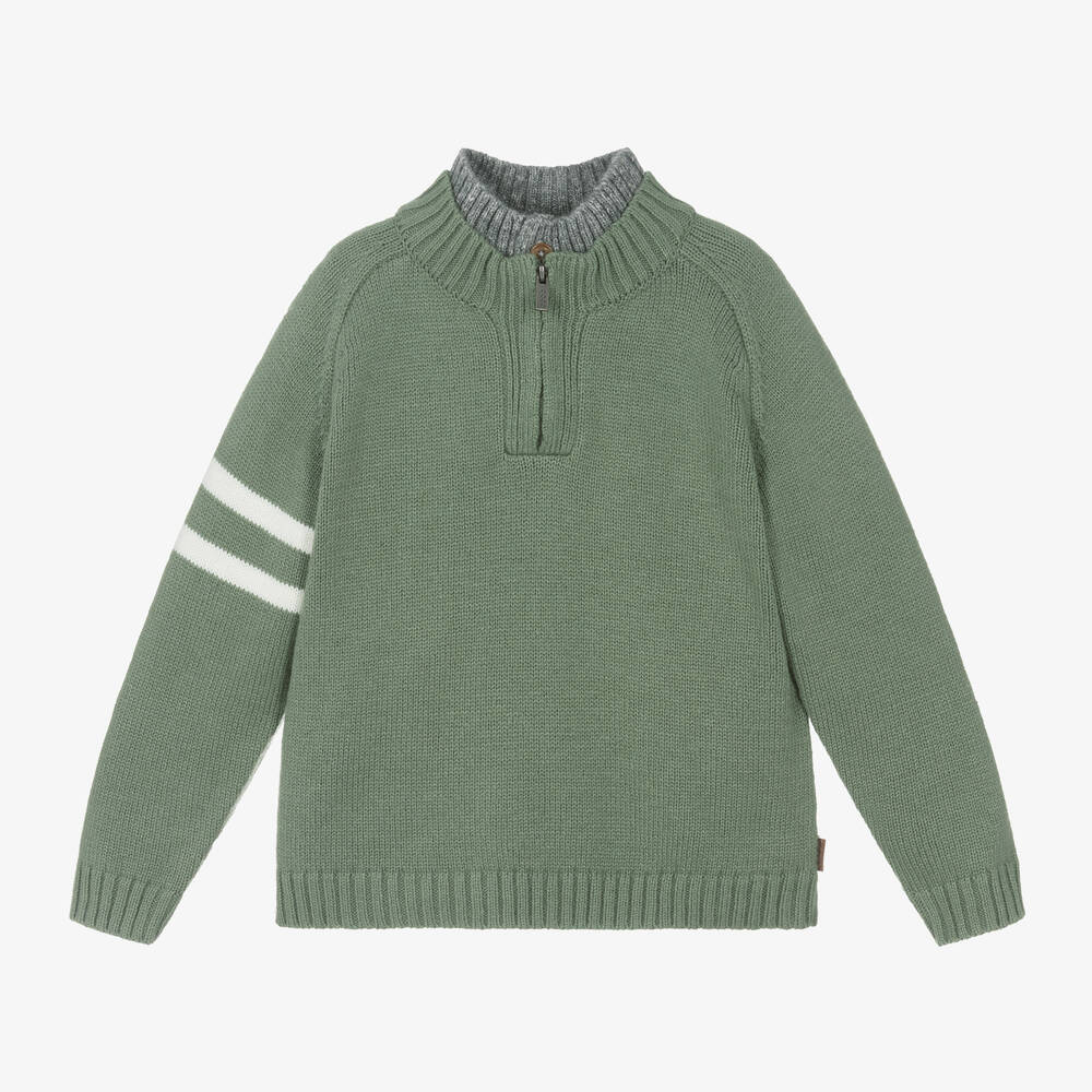 Boys Green Half Zip Knitted Sweater