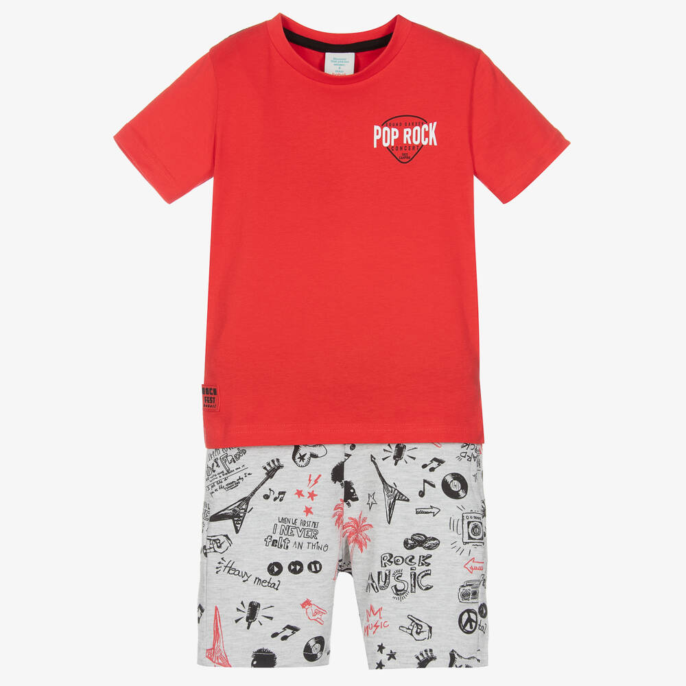 Boys Red Cotton Music Festival Shorts Set