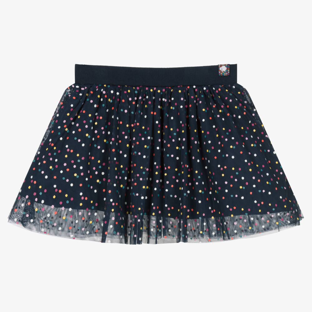 Girls Navy Blue Polka Dot Tulle Skirt