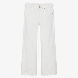 Girls White Cotton Flared Jeans