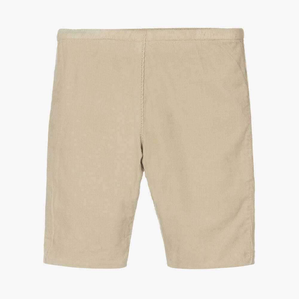 Smart beige trousers for little boys by French brand Bonpoint, woven in soft cotton needlecord. For comfort and easy pull-on, they have a stretchy elasticated waist. They are lined in soft, lightweight cotton and the small pocket on the back adds a sweet finishing touch.