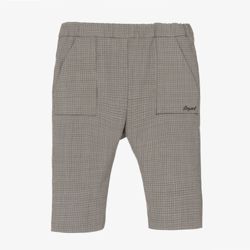Grey trousers for little boys by Bonpoint, finely woven in soft virgin wool. They have a smart check design for a timeless look. The brand's logo is delicately embroidered on one of the front pockets, and they have an elasticated waist for comfort.