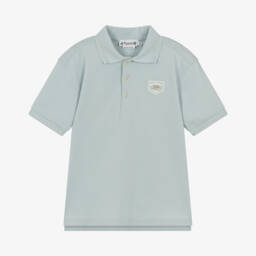 A classic pale aqua blue polo shirt for boys by luxury French brand, Bonpoint. Combining timeless styling with everyday comfort, it is made in soft cotton piqué with a traditional collar and button placket. The embroidered branding on the chest adds a hint of contrast and elevated touch.