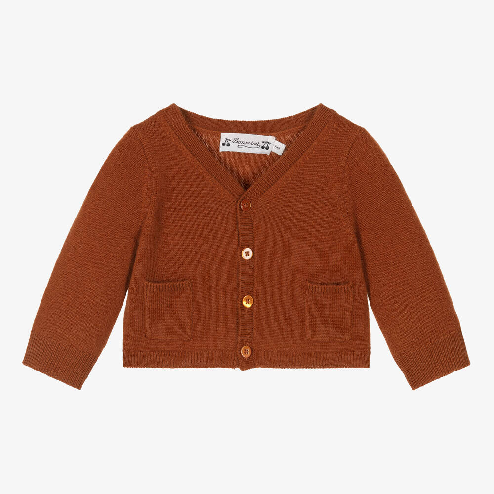 Cute cropped cardigan for little boys and girls, from luxury French brand Bonpoint. Knitted in super soft and lavish cashmere, it fastens with tonal buttons on the front to keep the warmth in. The look is finished with adorable drop pockets on the front.
