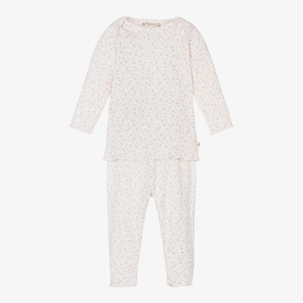 An adorable ivory leggings set for little girls by Bonpoint, made from soft cotton jersey. Both pieces are patterned with the brand's iconic cherry motif in muted pink tones, for a subtle designer look. The long-sleeved top has an envelope neckline for easy dressing and the leggings have a comfortable elasticated waist.