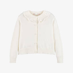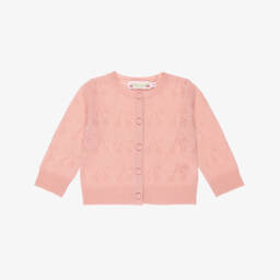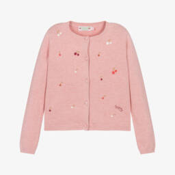 This lovely shell pink cardigan for girls by luxury brand Bonpoint is knitted in beautifully soft cashmere. A wonderful addition to any wardrobe, it is embellished with delicate, hand-embroidered bows highlighted with sparkling diamantés.