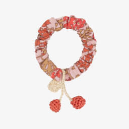 A lovely red hair elastic for girls by Bonpoint, made in soft cotton fabric. This pretty hair accessory is patterned with a yellow and green Liberty floral print. It is finished with delicate crochet cherries for a signature touch.