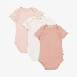 In shades of pink and ivory, this pack of three bodyvests for baby girls is by Bonpoint. Made in soft cotton jersey, they are embellished with a subtle scalloped trim and have a cherry logo tab on the side. They all have envelope necklines and practical popper fastenings between the legs.