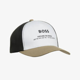 Set of two BPA-free baby bottles by BOSS Kidswear. The set contains a large 300ml feeding bottle with a pale pink cap, and a smaller 150ml bottle, with a white cap. Both bottles have a silicone teat, a screw cap to prevent leakages and logo branding printed on the sides.