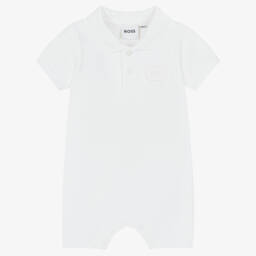 Charming pale blue shortie for baby boys by BOSS, made in comfy cotton jersey. The brand's iconic Double B monogram logo is printed on the chest for a designer finish.