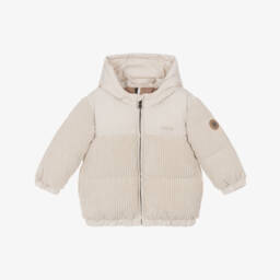 A cosy accessory for little boys, this beige beanie hat is by BOSS. Made in a soft ribbed knit with a touch of wool for warmth, it has a turned up brim with a tonal embroidered logo and a signature tricolour tab for a designer finish.
