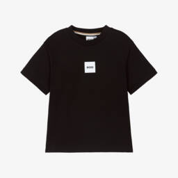 Black cotton Mini-me T-shirt for boys by BOSS, with a gold dragon and logo emblazoned across the front, inspired by the Lunar New Year. Made in comfortable jersey, it has further branding with the designer's signature coloured tape inside the neckline.