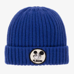Mini-me bright blue beanie hat for boys by BOSS, made in a super soft double-layer knit, with a touch of wool for extra warmth. Ideal for cooler days, this stylish hat has a rubberised black and white logo patch on the ribbed turn-up brim for instant designer appeal.