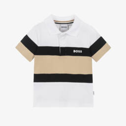 Boys white cotton piqué polo shirt by BOSS, featuring a striking abstract logo that captures modern style. Crafted with attention to detail, it includes a classic ribbed collar, button placket, and short sleeves, offering both comfort and style.