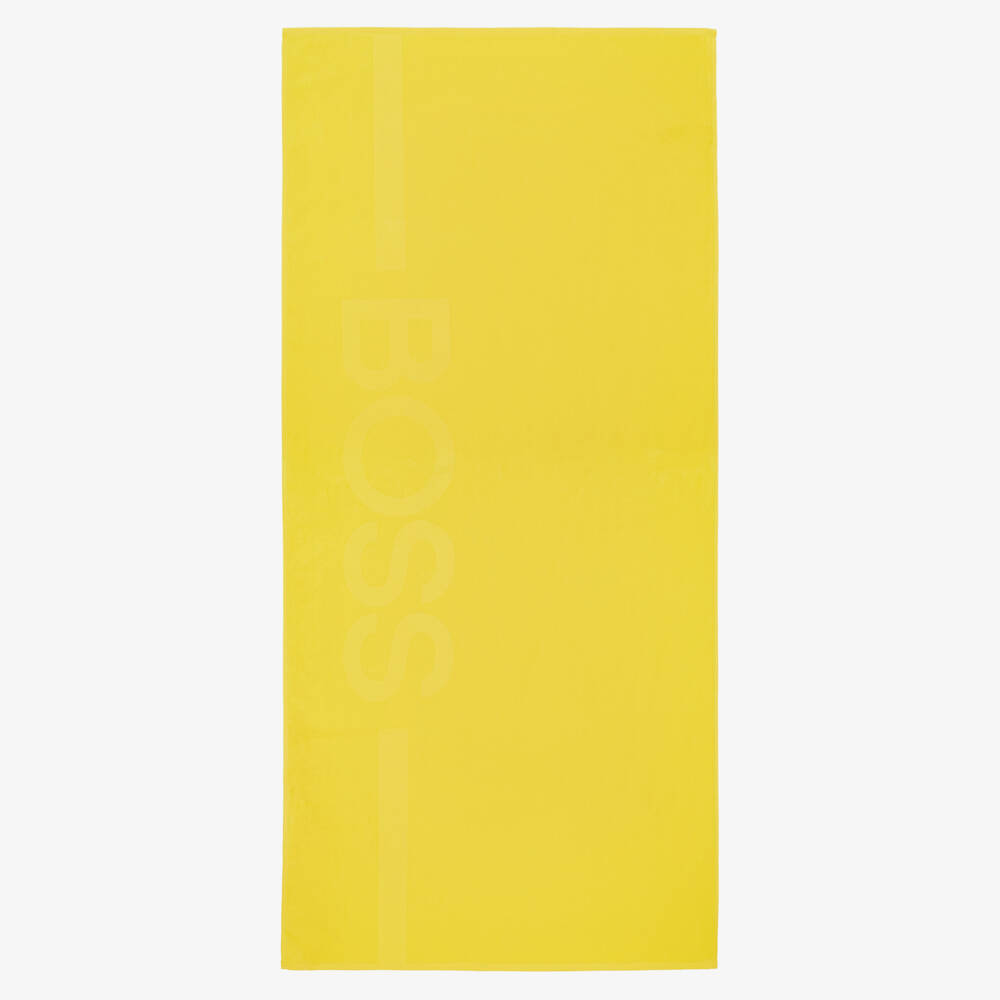Large yellow bath towel for boys by BOSS Kidswear ideal to use at home or at the beach. Made in soft cotton towelling, it has a tonal logo on one side.