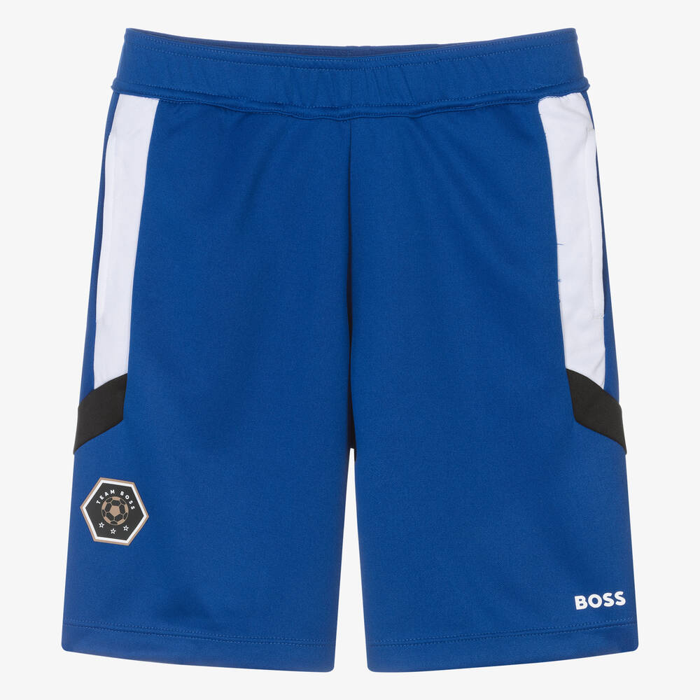 These royal blue, white and black shorts for teen boys by BOSS are the ideal choice for sports-lovers. With a football emblem above the front hem, these silky, stretchy shorts have been created as a celebration of the 2024 European Football Championship. The designer's name is printed on one leg for instant brand appeal, the side pockets are great for small essentials, and the stretchy waist provides long-lasting comfort.