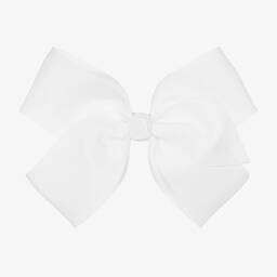 A lovely navy blue hair clip for girls by Bowtique London. This eye-catching bow is handmade in soft grosgrain ribbon and set on a metal alligator clip.