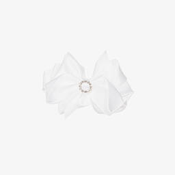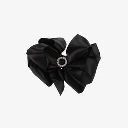 Girls elegant black satin bow hair clip by Bowtique London. It has a glamorous diamanté ring in the middle for a touch of sparkle and is set on a metal clip fastening.