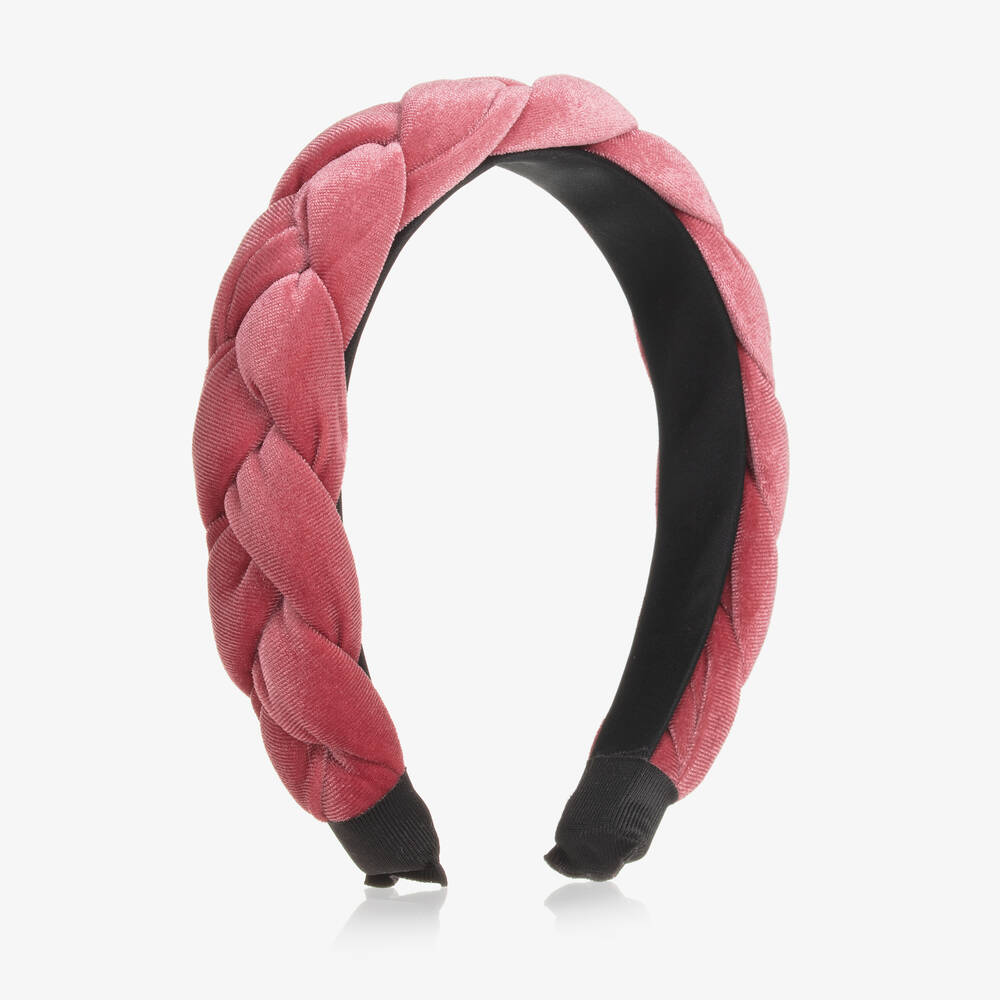 Girls Pink Plaited Velour Hairband