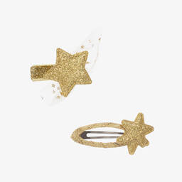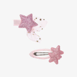Pack of two handmade pink hair clips for girls by Bowtique London, set on an easy-to-use metal clip fastening. Covered with pink glitter for a pretty look, they have cute star appliqués with lovely tulle trims.