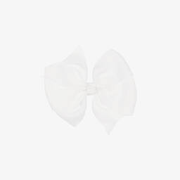 A pretty white hair clip by Bowtique London, styled in a double bow design. This accessory is handmade in dainty grosgrain ribbon that is set on a metal slide-on clip.