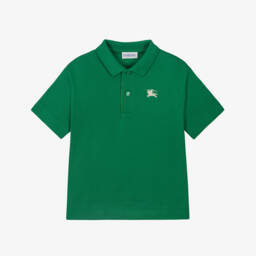 Bright blue polo shirt for baby boys by Burberry, made in soft cotton piqué. This casual short-sleeved top has a classic ribbed collar and a branded button placket, with the British brand's instantly recognisable Burberry Check trim. For a signature finish, it has a red embroidered Equestrian Knight logo on the chest.