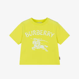 In the designer's shade of dark birch brown, this casual T-shirt for baby boys is by luxury British brand Burberry. It has the house's Vintage check panel across the chest, with a signature white logo print on the back. It is made in soft cotton jersey, with useful button fastenings on one shoulder.