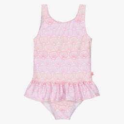 A stylish beige swimsuit for baby girls from luxury brand Burberry, in the designer's signature Beige Check. Silky, stretchy and fully lined for comfort, it has a stylish asymmetric ruffle.