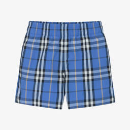 Beige swim shorts for boys by luxury brand Burberry, in the designer's signature Burberry Check. Made from recycled material, they are silky smooth and fully lined, with a gently elasticated waist for comfortable wear.