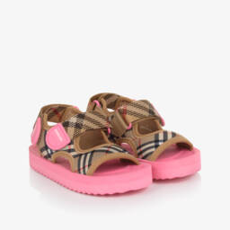 Teen Archive Beige Vintage Check Leather Sandals