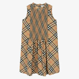 From British luxury designer Burberry, a navy blue shirt dress for teen girls. A staple for smart-casual dressing, this double-breasted design is inspired by the iconic trench coat with its collared neckline and front button fastenings. A gold zip fastening is neatly concealed below the placket and the short sleeves are lightly elasticated on the cuffs for added volume on the arms. The detachable belt can be adjusted on the waist to easily alter her silhouette. It is made from soft and lightweight cotton poplin with a hint of stretch.