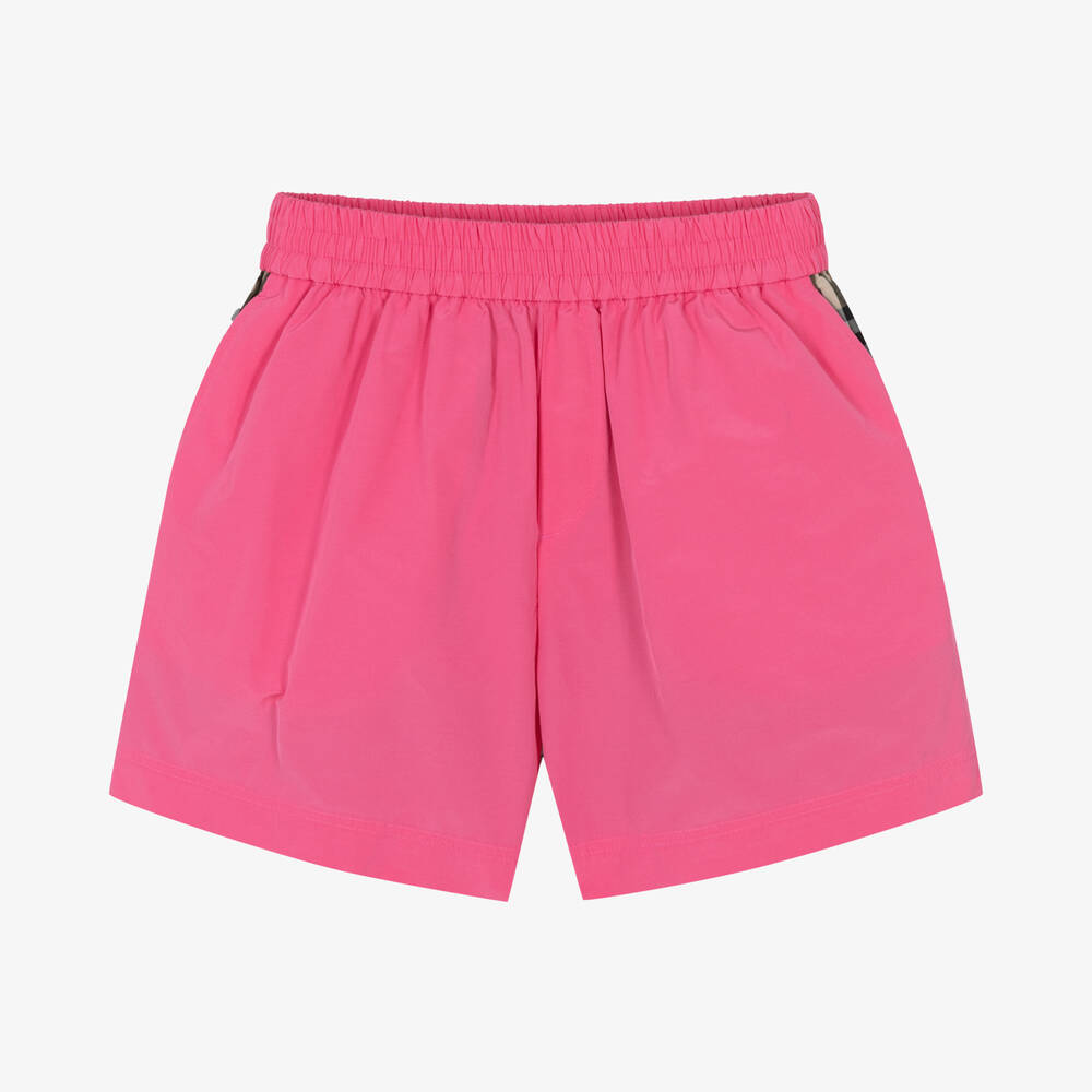 Designed by British luxury brand Burberry, these bright pink shorts for teen girls are great for achieving an instantly recognisable designer look. Stylish to pair with smart and casual looks alike, these utility-style shorts have a cool, contemporary vibe. The back is printed with the iconic Vintage check in archival beige, finishing the look with opulent and luxurious stand-out style. They have a cool wide shape and elasticated waist, promising comfort and on-trend fashion.