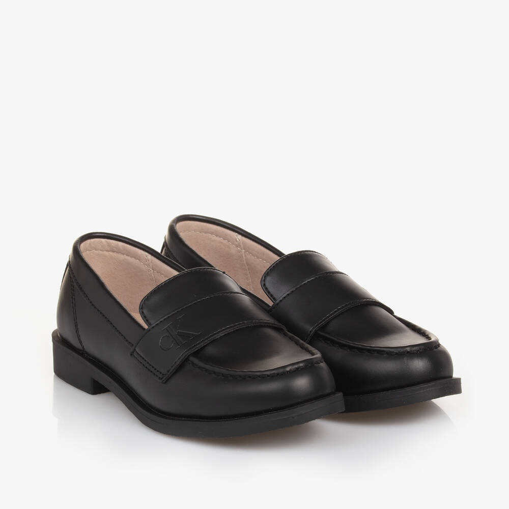 Smart black faux leather loafers from Calvin Klein, suitable for boys and girls. The durable faux leather is lined with leather for comfort, and the rubber soles improve grip. This product was made from at least 50% recycled polyester.