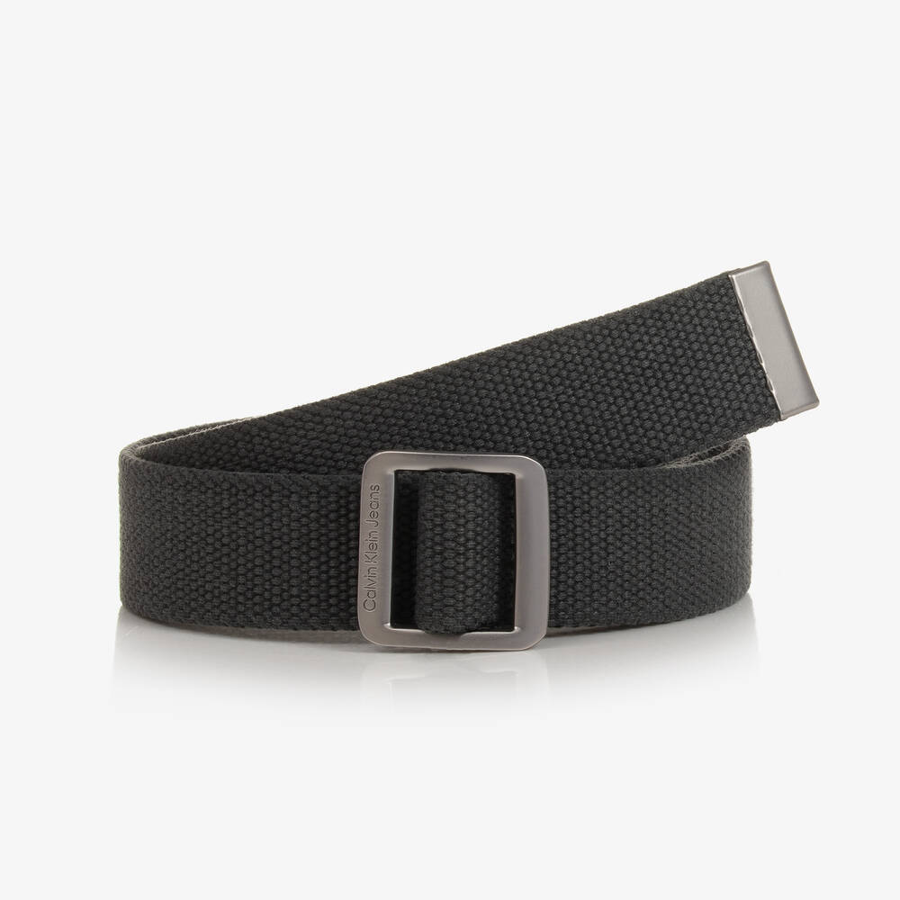A grey-blue canvas belt for boys and girls from Calvin Klein. Woven in soft, durable material, this essential accessory is signed with a stand-out logo print in white. Adjustable for the desired fit, it has a silver-tone metal buckle feature, which is engraved with branding for that signature look.