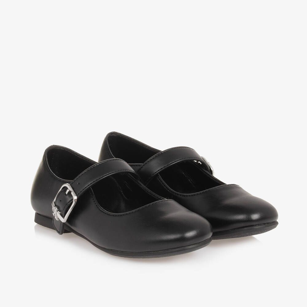 Black faux leather pumps for girls by Calvin Klein. In a classic Mary Jane style, they have a buckle fastening strap and a comfortable low heel. Lined in smooth faux leather, they have a softly padded insole and a rubberised sole for good grip. Adding a subtle designer touch, the brand's iconic CK monogram is visible on the silver buckle.