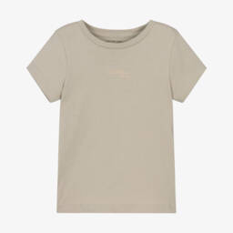 Stylish ivory cotton T-shirt for girls by Calvin Klein, with a boxy, dropped shoulder silhouette. Cool and casual, it is made in soft jersey and features a flocked CK monogram logo for instant designer appeal.