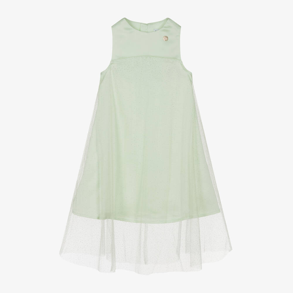 Girls Mint Green Satin & Tulle Sparkle Dress