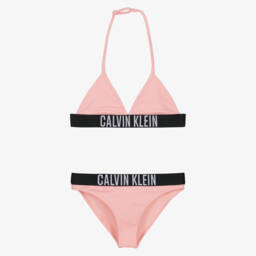 Bright orange bikini for girls by Calvin Klein, with logo-jacquard elasticated bands in black and silver. Silky smooth and stretchy, it is made with recycled fibres and both pieces are lined at the front for comfort. The stylish top has an adjustable halter neck strap and removable padding.
