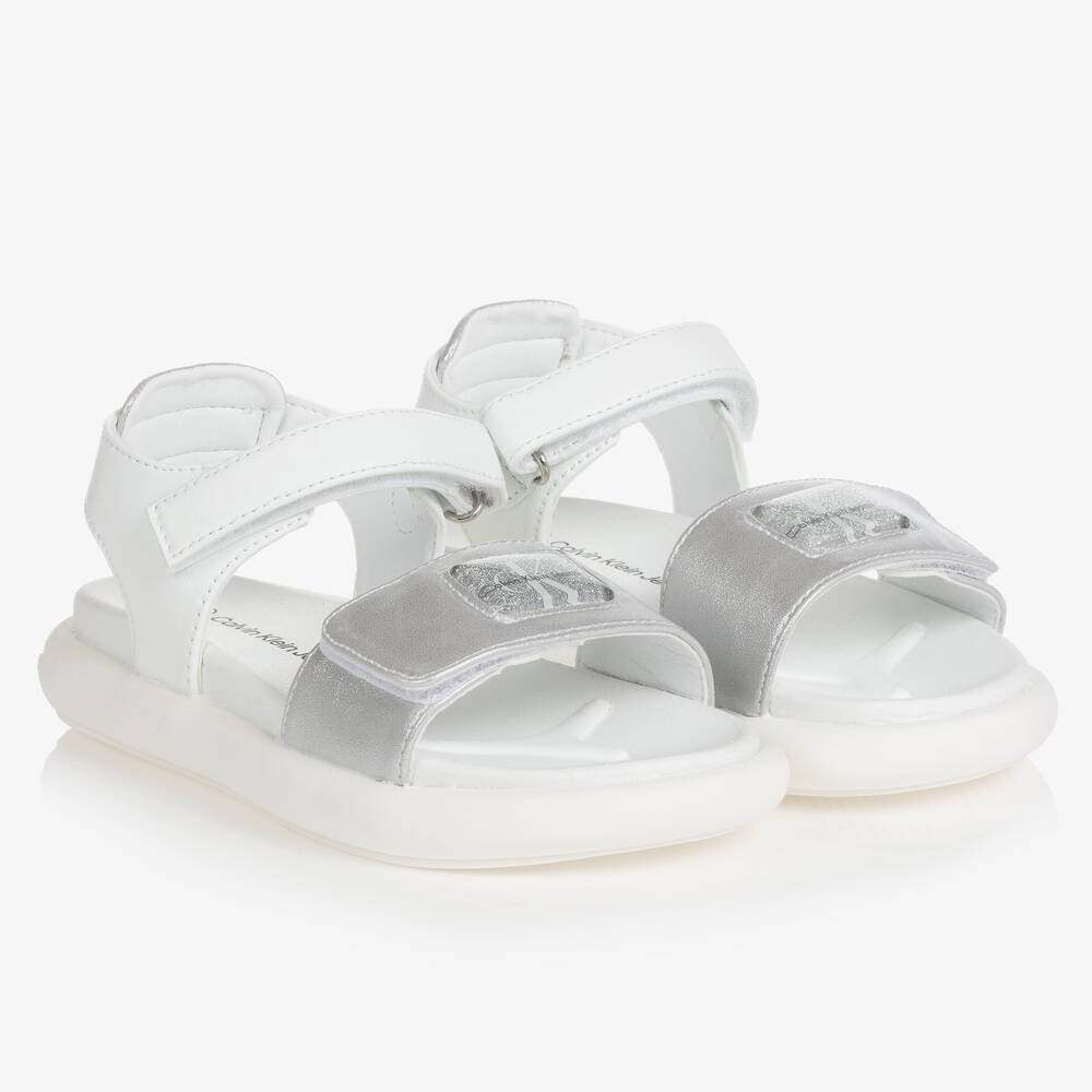 Girls White & Silver Logo Sandals