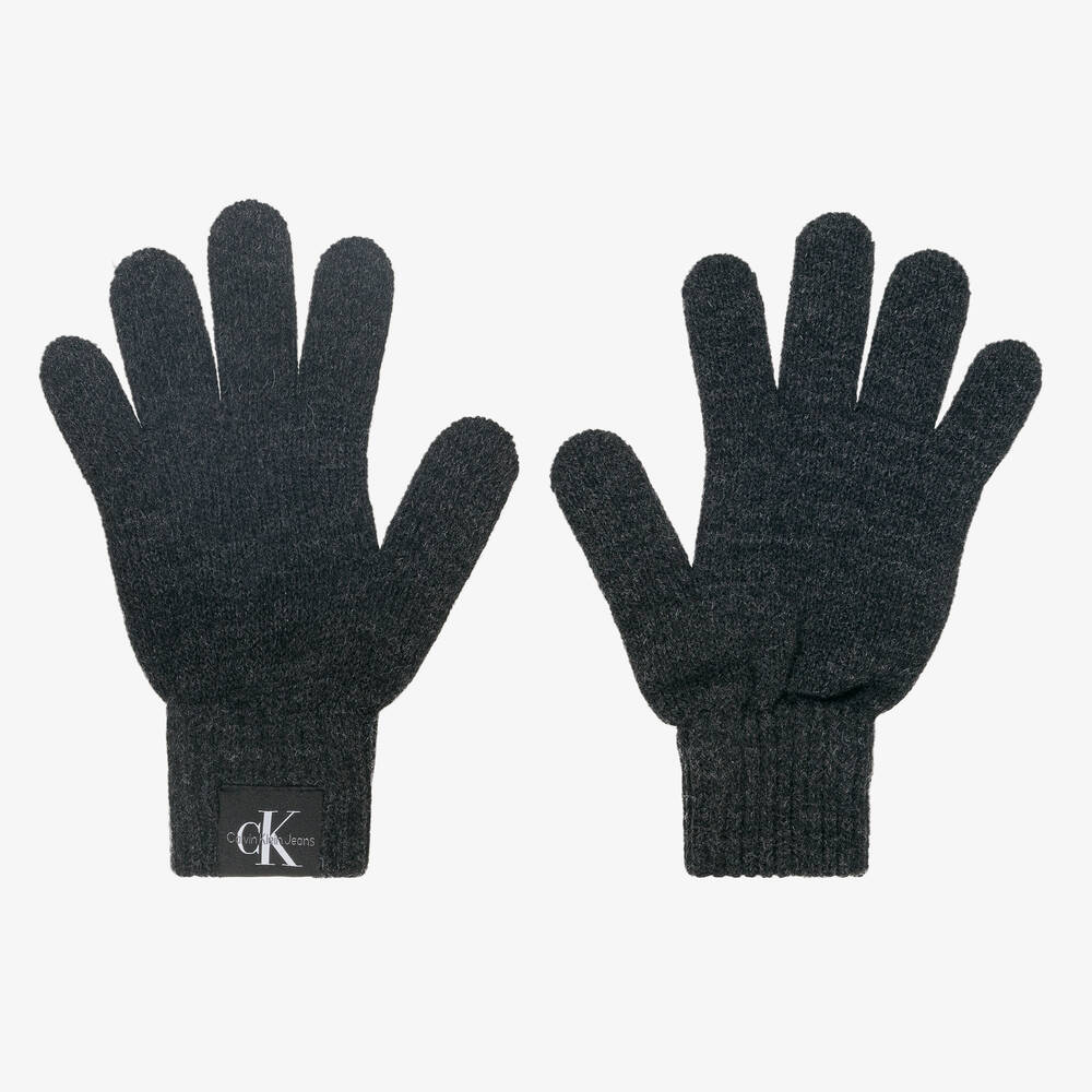 Grey gloves for boys and girls by American brand Calvin Klein, made in a comfortable, lightweight knit. Little wrists are kept cosy with ribbed cuffs, one of which has the designer's monogram logo badge sewn on the front.