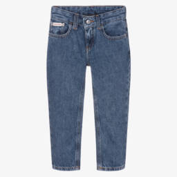 Logo inspired light blue wash jeans for teen girls by Calvin Klein, with a bold CK monogram embroidered on the back. This casual wardrobe staple has a mid-rise skinny fit and classic five-pocket styling with a small CK tab on the coin pocket and embossed silver rivets. Slim through the hips and thighs with skinny legs, they have branded a button and zip fastening. These are made in soft and stretchy denim with at least 20% certified recycled cotton.