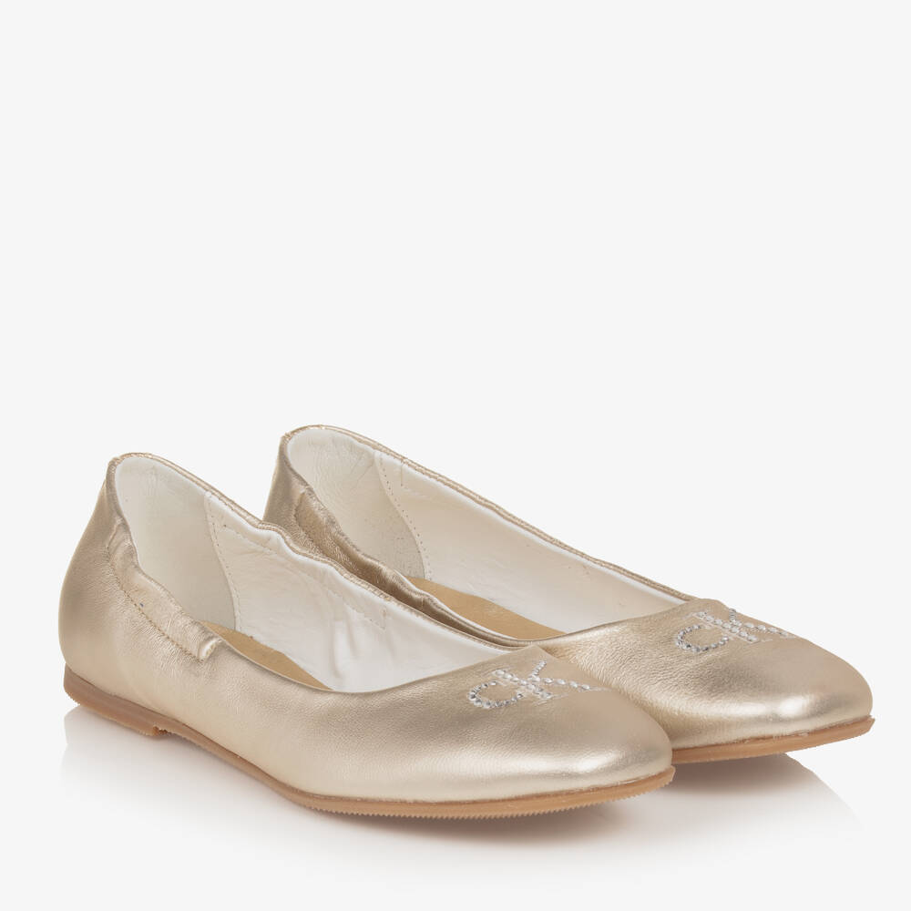 Teen Girls Gold Leather Ballerina Pumps