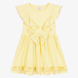 Pretty beige dress set for girls by Caramelo Kids, made in soft cotton jersey. Adorned with sparkling silver diamantés, the bodice has lovely ruffle trims and a keyhole fastening on the back of the neck. Lined in soft voile, the statement tutu skirt adds statement volume to this cute style. A sweet bow headband accessorises the look.