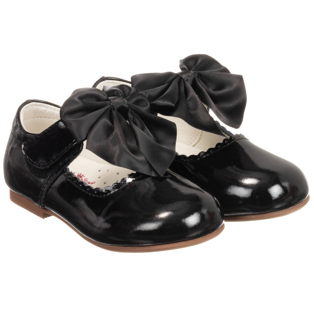 Girls Black Patent Bow Shoes