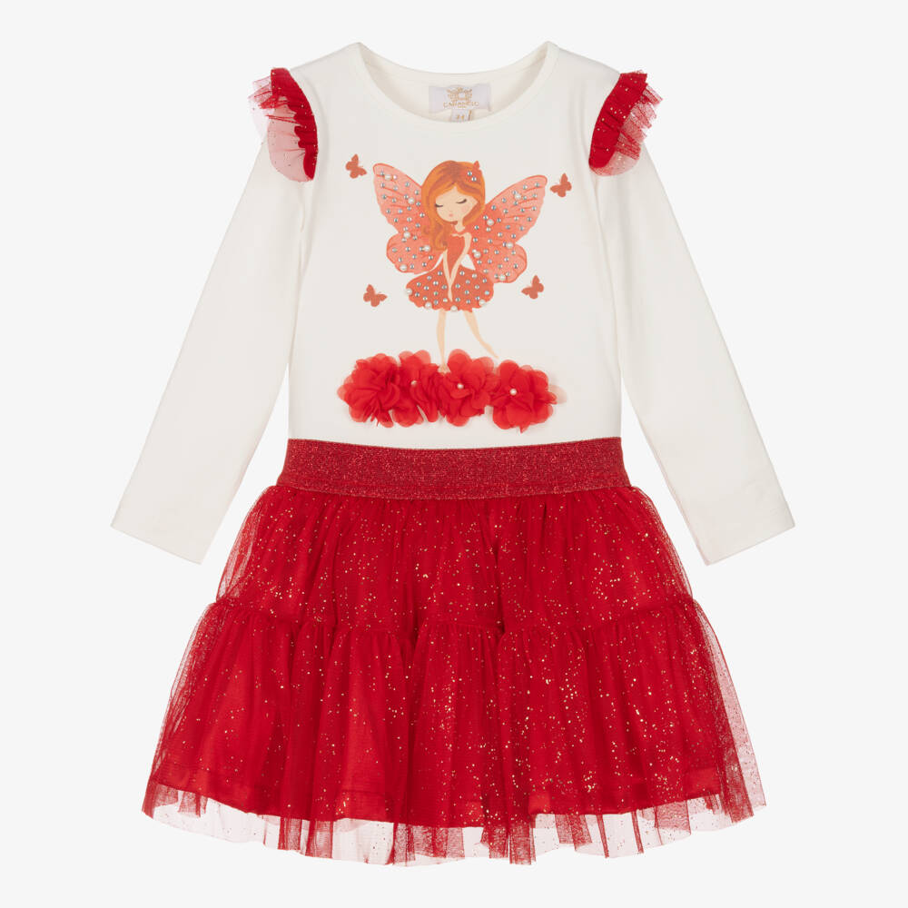 Girls Ivory & Red Tulle Fairy Skirt Set