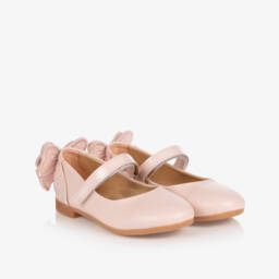 Girls Pink Faux Leather Bow Shoes