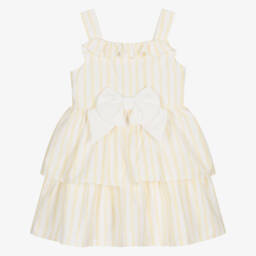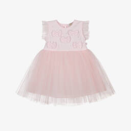 This pretty red dress for girls by Caramelo Kids is ideal for a special occasion. Designed for both comfort and style, it is made in soft jersey, with a ruffle-trimmed neckline and a large sparkling diamanté bow on the front. Tiers of tulle on the skirt add a touch of elegance, and a coordinating, diamanté bow hair clip completes the look.