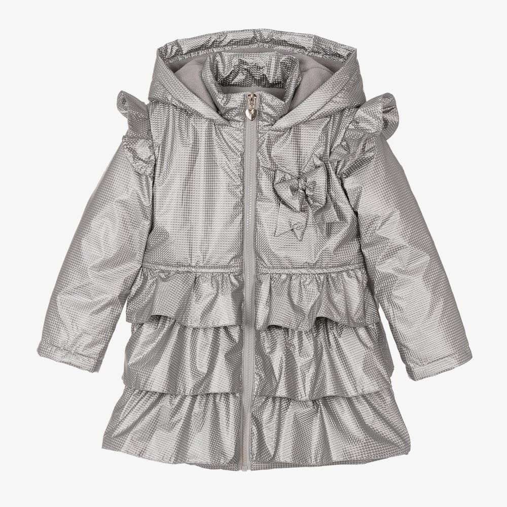Girls Silver Hooded Ruffes Coat