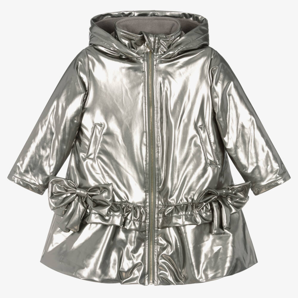 Girls Silver Shimmer Bows Hooded Coat